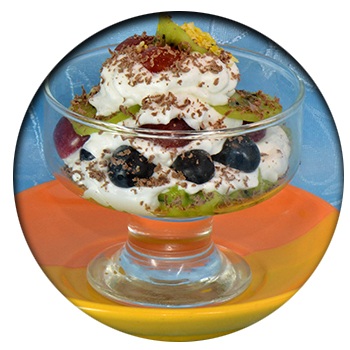 - В креманку выложить слой киви. Полить кремом. Сверху выложить виноград, полить кремом. Повторить слои. Посыпать тертым шоколадом или кокосовой стружкой.