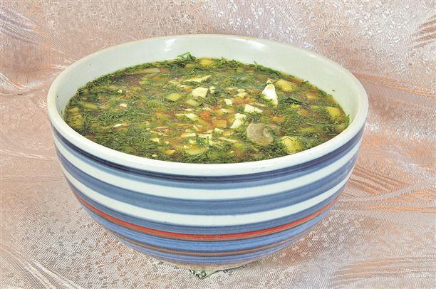 - Готовый суп посыпать зеленью, подавать с сухариками.