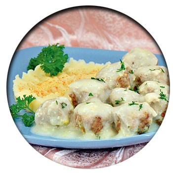 - Аккуратно переложить мясные шарики в глубокий противень или форму. Залить смесью бульона и сливок и отправить в духовку ещё на 20 минут.