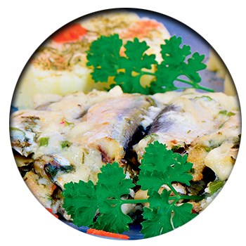 1 кг свежей кильки, зелёный лук, 100 г сливочного масла, 1 ст. молока, 0,5 ст. ложки пшеничной муки, 1 ч. ложка соли, укроп.