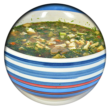 - Добавить салатный «фарш». Всё вместе варить около 20 минут. Получается дивный лёгкий супчик очень приятного цвета.