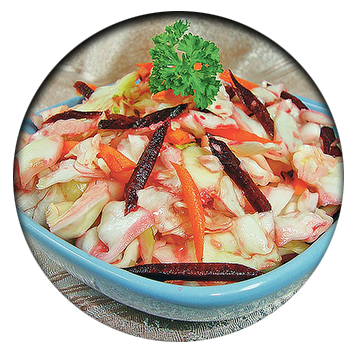 Белокочанная капуста, морковь, чеснок, зелень укропа и петрушки. Заливка: на 2 л воды – 100 г яблочного уксуса (9%), 4 ст. л. соли, 3 ст. л. сахара, 100 г растительного масла, семена укропа.