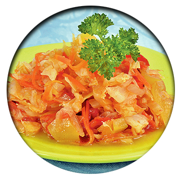 - Помидоры, огурцы, болгарский перец, морковь порезать соломкой, лук – полукольцами, капусту нашинковать.