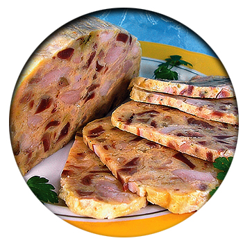 - Подготовленный язык уложить в форму. При укладке прослоить разобранными кусочками мяса и жира. Можно сдобрить перцем, чесноком, специями в зависимости от вкуса. Для лучшего склеивания перед укладкой в форму каждый кусочек языка смочить в желатиновом растворе.