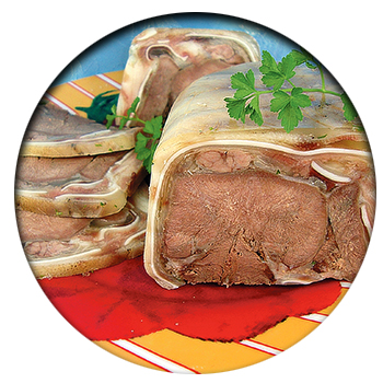 Свиной язык – 3 шт., свиные уши – 4 шт., перец горошком – 5-7 шт., лавровый лист – 3-4 шт., соль, желатин – 3 ст. л., количество зависит от объема (для заливки обычно достаточно 150 мл бульона).