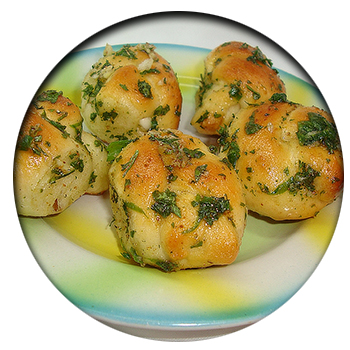 Для теста: мука – 500 г, тёплое молоко – 250 г, сухие дрожжи – 7 г (2 ч. ложки), растительное масло – 3 ст. ложки, сахар – 2 ч. ложки, соль – 1 ч. ложка. Смесь для обваливания испечённых булочек: рубленая зелень петрушки, чеснок – 2-3 зубчика, растительное масло – 70 г, сухая приправа «аджика» – 1 ст. ложка.