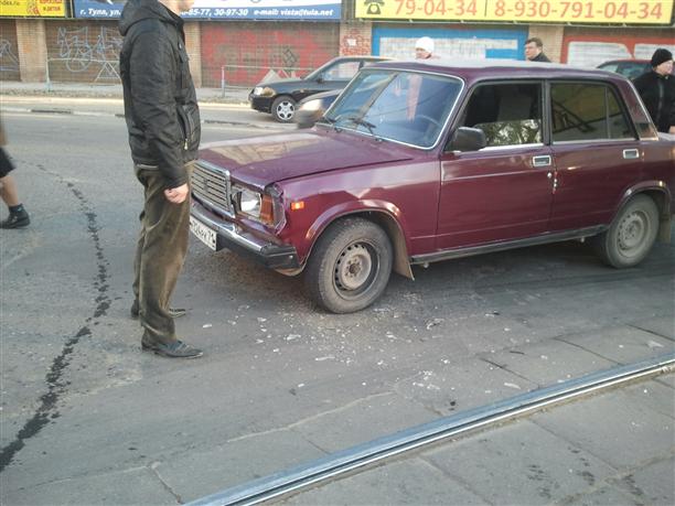 На пересечении Агеева и Руднева произошло ДТП. Столкнулись "Лада Калина" и "шестерка". Судя по ситуации, авария произошла по вине водителя "Лады Калины". В результате аварии образовалась огромная пробка.