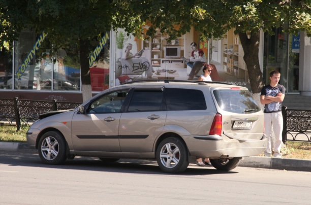 Виновник ДТП - водитель "Фольксваген Тигуан" - не успел затормозить и с силой подтолкнул белый "Форд Фокус". От удара "Фокус" отнесло во впереди стоящего собрата, который врезался в учебную "четырнадцатую".