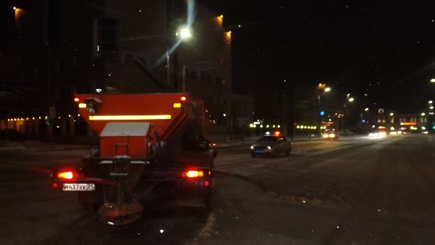 Пока оформляли нарушения - поступил еще один вызов. ДТП на перекрёстке Староникитской и Советской улиц. Некий балбес врезался в снегоуборщик-посыпальщик и "свалил" с места происшествия. В лучших традициях жанра, водитель КАМАЗА запомнил только цвет и марку авто. Это была крайне "редкая" модель в нашем регионе - ВАЗ 2114.