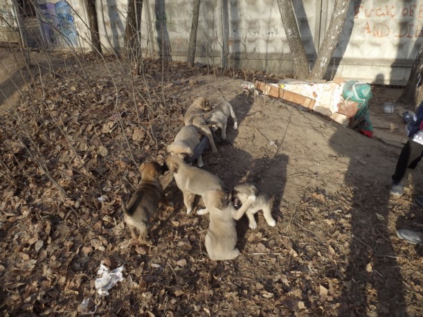 Вообщем, всего там 9 щенков. При рождении было 10, но 1 погиб сразу. А мать собачек, это вовсе не мать. Настоящую маму сбила машина Рязанке, чуть ли не сразу после родов. А это, самка из стаи мамы, которая взяла на себя обязанности воспитателя и охранника. И никаких щенков не пропадало, а мой просто очень похож, но различия всё же есть. Эта женщина сама их кормит, ходит туда убираться, помогает им выжить всячески. Вы знаете, и она не какая нибудь чушка, а довольно прилично одета, и очень умна. Честно — был удивлён. А её история просто добила.