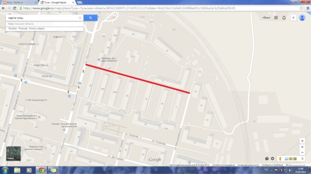 Вот она обозначена красным: между Октябрьской и Максимовского.