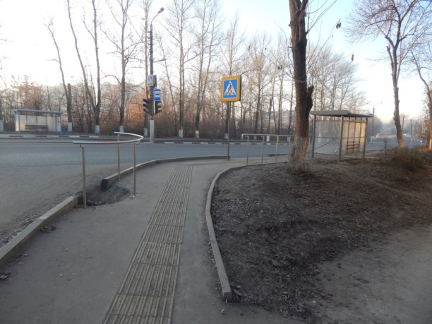Для удобства слабовидящих, проход к остановке оборудован поручнями.