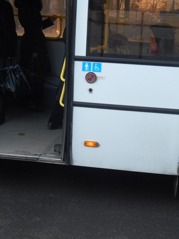 И ещё такой момент, вряд ли люди с костылями чувствуют себя комфортно в салоне низкопольного транспорта (фотографировать салон не стал, думаю все видели ступени). А транспорт этот, судя по эмблеме, должен был бы облегчить жизнь человеку с тростью.