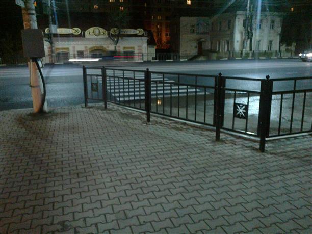 2013-й, 17 октября, вечер, огонь прошёл, все рады, зебра упирается в стоянку автомобилей, а стоянка огорожена забором, фактически зебра упирается в забор.
