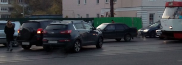 В районе Чебуречной в Заречье в очередной раз встретились два одиноких сердца! Из-за их великой любви и объятий трамваи встали и скорее всего надолго. Обнимашки произошли в 8-00 как раз в то время как я вел ребенка в школу. Все кто едет на работу, выходите чуточку пораньше. А теперь вопрос для обсуждения. Как так то? Как можно было умудрится? На фото один водитель есть, второго не видел.