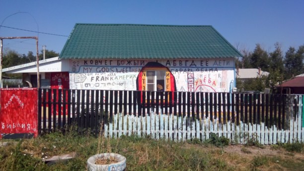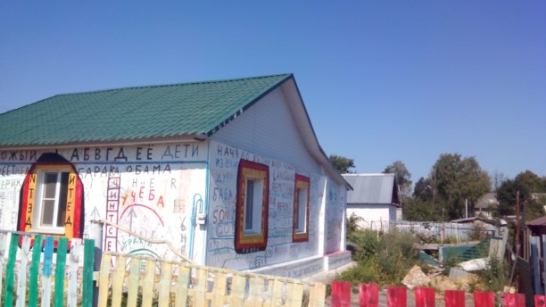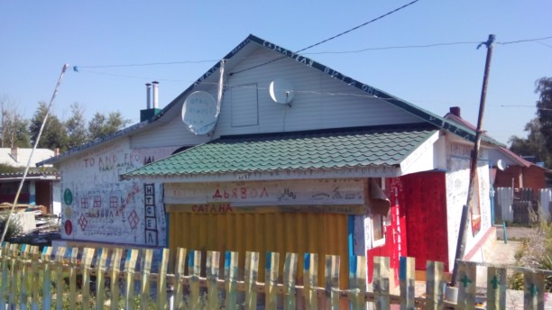 Пока водитель строил маршрут, долг призвал меня победить страх и удивить читателя. Дом выглядел жилым и ухоженным, за исключением страшных, а порой и вовсе несуразных надписей. Сделав несколько кадров, отправились на место назначения. По приезду, сразу же спросили местное население, что за притон мы нашли, ответ поразил...