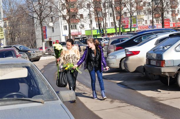 Приятно было видеть в городе девушек с цветами, а так же мужчин, спешащим к своим дамам.