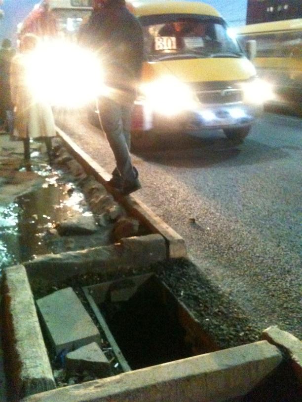 На проспекте Ленина в районе троллейбусного кольца прямо на остановке находится открытая ливневка. Народ на остановке стоит, уже поплевывая туда, а кто-то может и нырнуть, если не заметит.