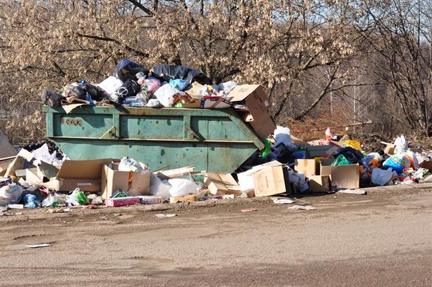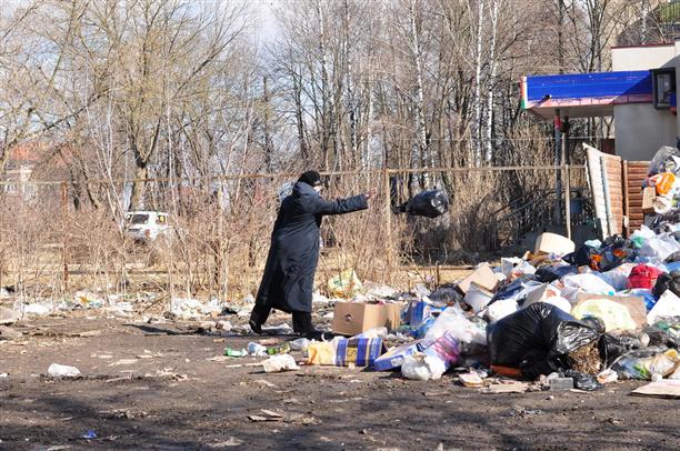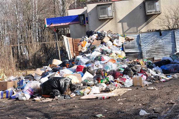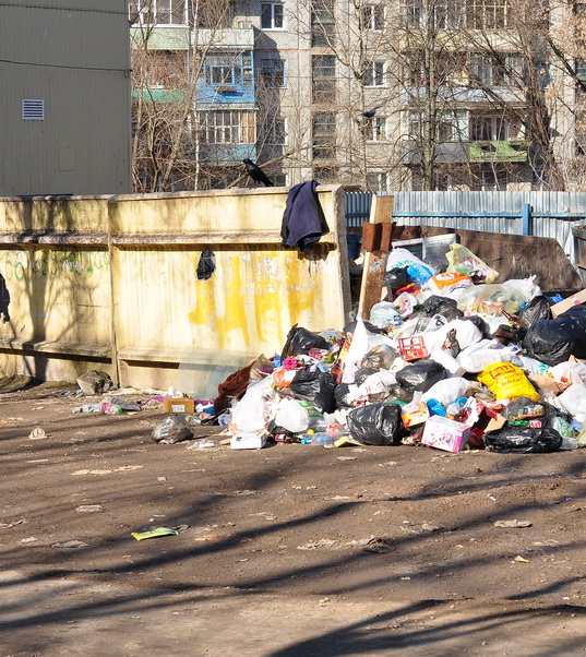 Полюсная 66. Рядом с крупным магазином свалка переполнена, и никому нет дела.