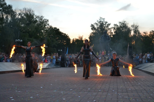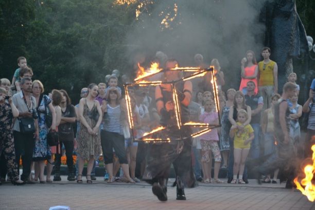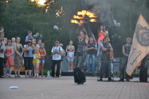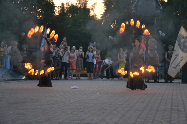 Кульминацией первого дня фестиваля стало завораживающее шоу Театра огня "Эра". Правильно подобная музыка, кожаные костюмы и языки пламени помогли создать атмосферу таинственности, чтобы зритель смотрел на происходящее затаив дыхание.