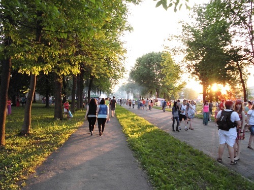 Вечером основная часть мероприятий и празднующих переместились на стадион и прилегающий городской парк...
