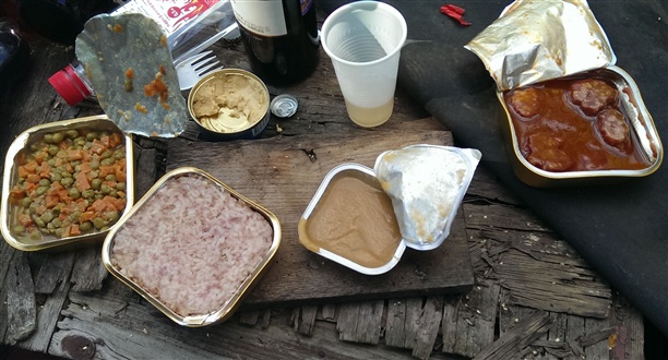 Процесс поедания я снимать не смог, так быстро все это было слопано. Могу сказать, что это все действительно вкусно. Жирная пища, конечно, но военным нужно много энергии и сил.