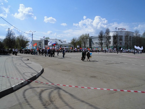 Далее праздничное шествие по центральной площади города трудовых коллективов, общественных организаций и т.д. и т.п.