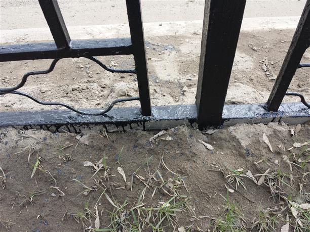 Нижняя грань ограждения уже утонула в земле. Очистить, убрать грунт? Зачем - землица надежнее любой краски защитит металл.
