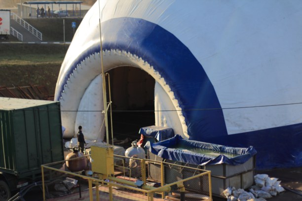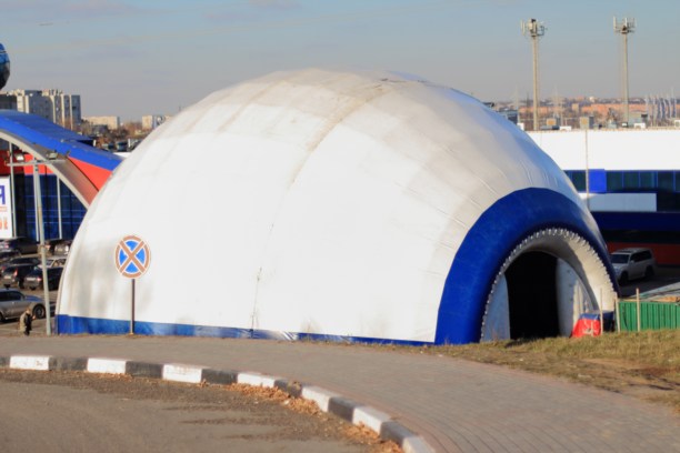 24 Октября. На парковке гипермаркета "Линия" развернут большой надувной ангар, похожий на приземлившийся НЛО.