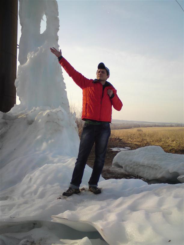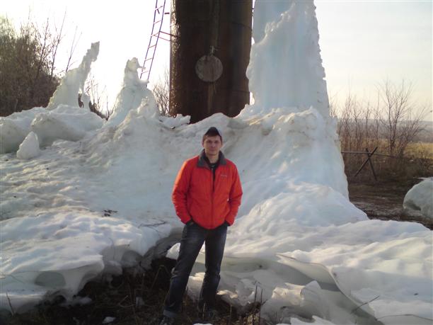 Пока в одной стороне горят дачи, в другой нашелся ледяной сталагмит метров пять в высоту. Увы, под горячим солнцем "ледышка" уже растаяла – была выше.