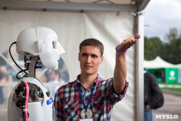 Сказал он и съел конфетку. Нет, это не строчки из сценария о работе психбольниц — это реальная ситуация на IT-фестивале. Робот-то, оказывается, сладкоежка) Везёт ему, и покормят, и фигуру не испортит…