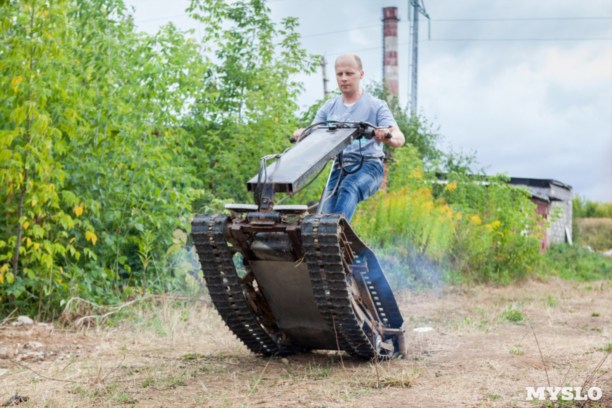«Пыль да тумааан», — захотелось спеть после того, как ещё разок взглянула на шедевр туляка. А что, пока сельские дороги не стали похожи на городские магистрали, передвигаться на них действительно лучше на «гусеницах». И удобно, и не застрянешь.