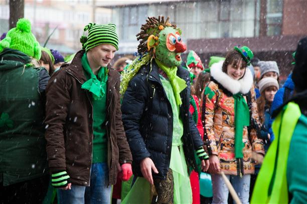 Но не от злости или зависти, а в честь Дня Святого Патрика. Туляки с огромным удовольствием под бурей снега и ветра прошли в карнавальном шествии. Изумрудный город и только. Очень красиво - рекомендую посмотреть фото, если вы этого ещё не успели сделать.