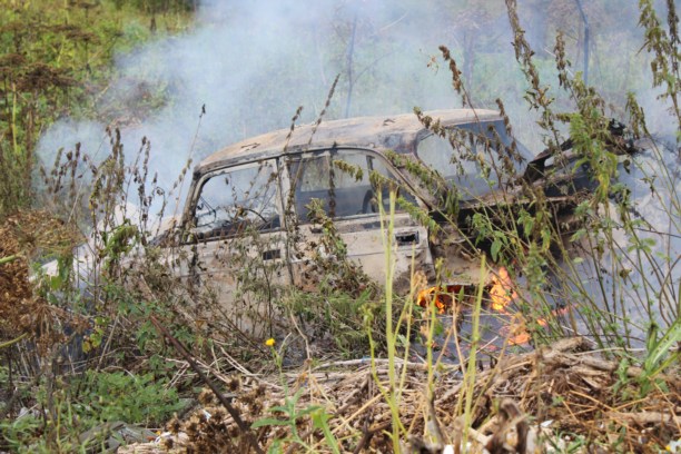 Следующий вызов. Компания довольно взрослых людей, подвыпив, решила, что сдать на металлолом старую машину будет проще, если в ней всё сжечь. И сбросила её в овраг на мусор.
