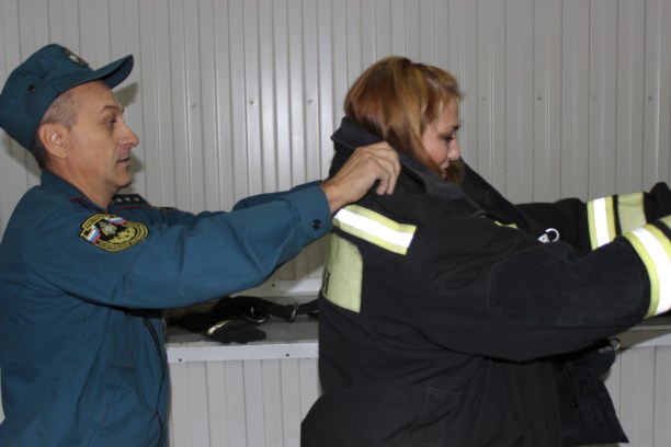 Её нужно одеть за 20 секунд (!!!),форма для этого сложена специальным образом. Но даже при таком раскладе и с помощью ребят из части я справилась с задачей минут за пять, не меньше.