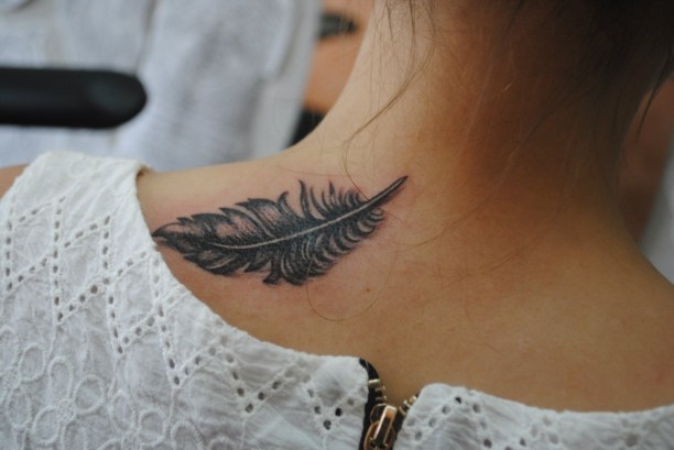 Приходит клиент, распечатываем эскиз нужного масштаба. А если рисунок не сложный, то рисуем от руки, например, пёрышко: