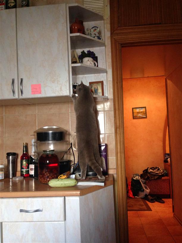 Она безумно избалованная и лазает где придется.