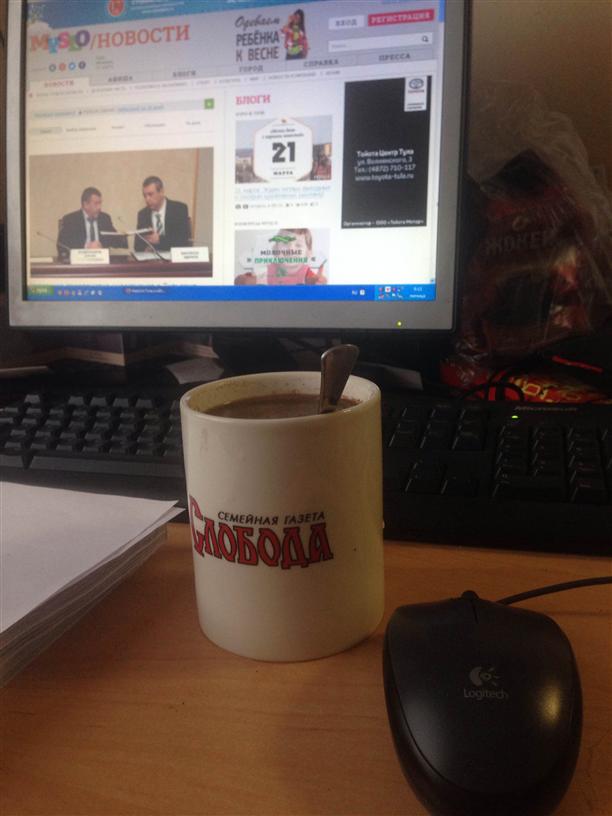 В 9.00 я как штык на работе. Дорогу до нее не помню. Кофе, видимо, не помог, поэтому выпиваю вторую кружку за чтением новостей с портала. Кстати, тоже молотый.