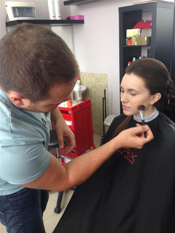 Забегаю к визажисту, а он опаздывает. Тем временем перевалило за 12.00. Очень долго делал макияж. Увлекся, видимо. А время у нас крайне ограничено.
