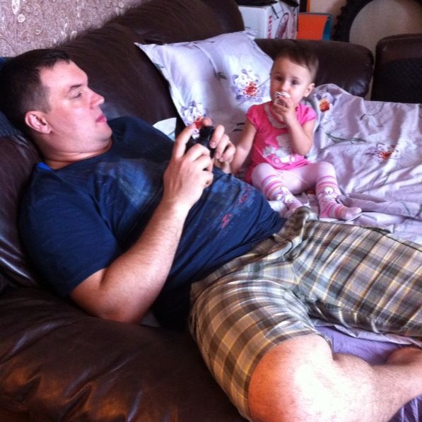 Немного прогулявшись, мы вспомнили, что опаздываем в гости к моему другу. Он же крестный моей дочери. Правда он совершенно не умеет играть с детьми. Развлечения, на его взгляд, выглядят вот так:
