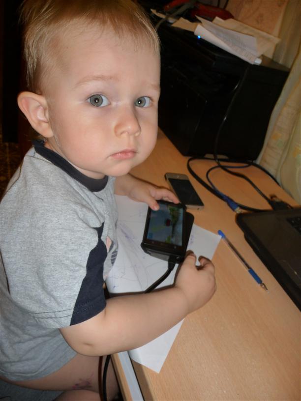 Я за компьютером, Ваня у меня на коленях))) Вот так и сидим!!!