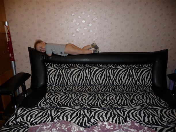 Наступает долгожданное требование: «Мам, стелить. Я буду спать». Странно, но за тем, как я ему стелю, он наблюдает строго лежа на спинке дивана, уж не знаю почему, но я к этому привыкла. Пару раз он падал мне на голову, за что получал по полной, теперь держится крепко, падать перестал)))