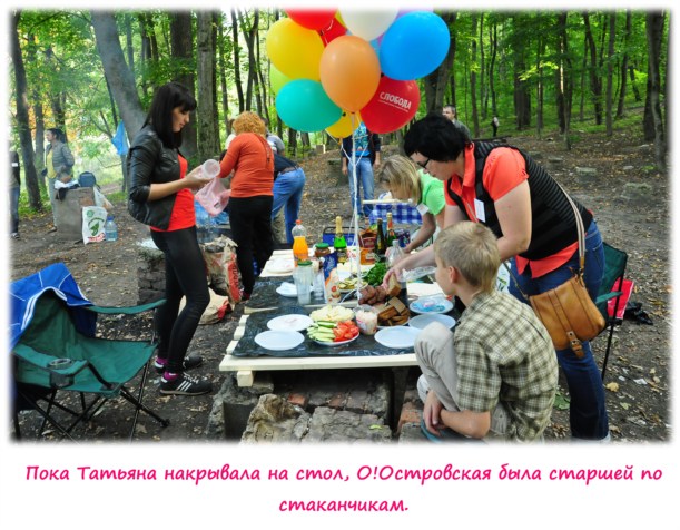Владимировну , Ольгу О. , и девушку в зеленой футболке (ник из двух слов вроде) - за сервировку стола,