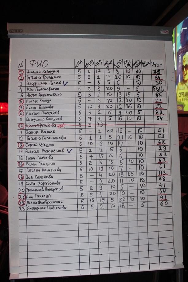 За это ведущий вечеринки Гаврила Путевый ставит дополнительные баллы. Всё аккуратно заносим в таблицу.