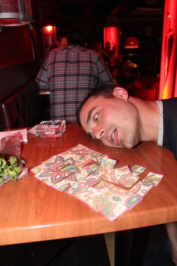 18:00 Теперь надо подготовить Чили бар к вечеринке. Немного сдвинуть столы, подключить звук и проектор. Это все делает Сергей Градов. Я же снова занимаюсь реквизитом =)