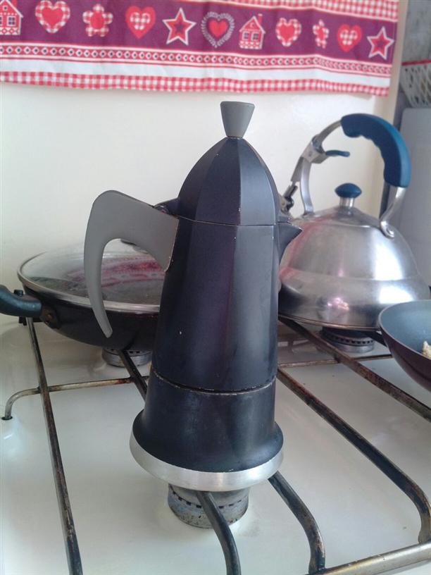8:05 Время для кофе! Варю его в любимом кофейнике, который очень похож на пингвина. Пока варится кофе — готовлю завтрак.