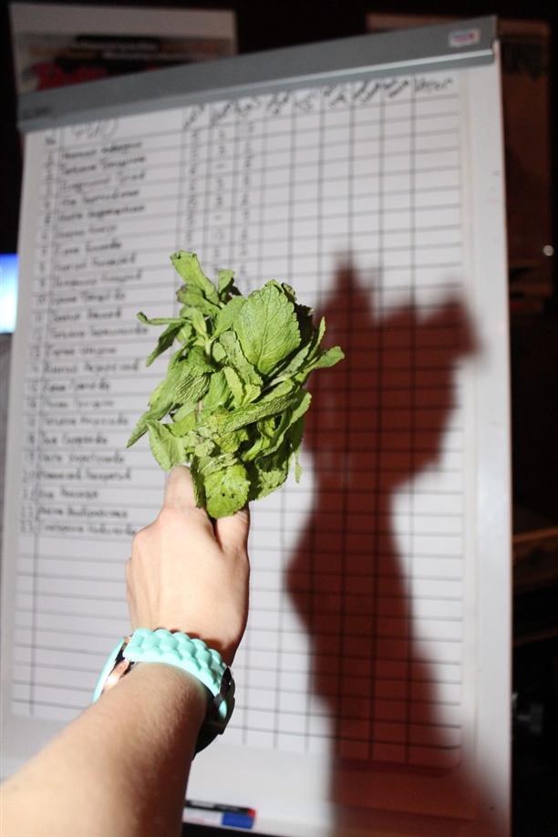 19:30 Все участники розыгрыша на месте. Начинаем! По условиям розыгрыша каждый должен был принести с собой веточку мяты и одеться в этническом стиле.