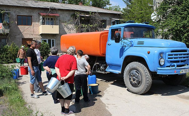 В группе Myslo Вконтакте после публикации первой записи в этом блоге написали об отсутствии воды в Крыму - воду привозят на машинах: