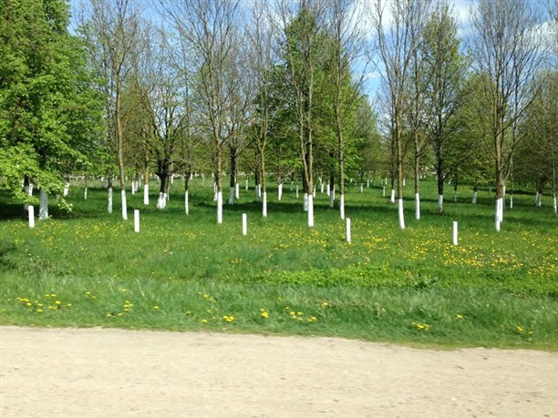 Деревья в населенных пунктах побелены, вдоль дорог елки и кустарник пострижены, на лужайках пасутся пестрые коровки. Короче, идиллия.