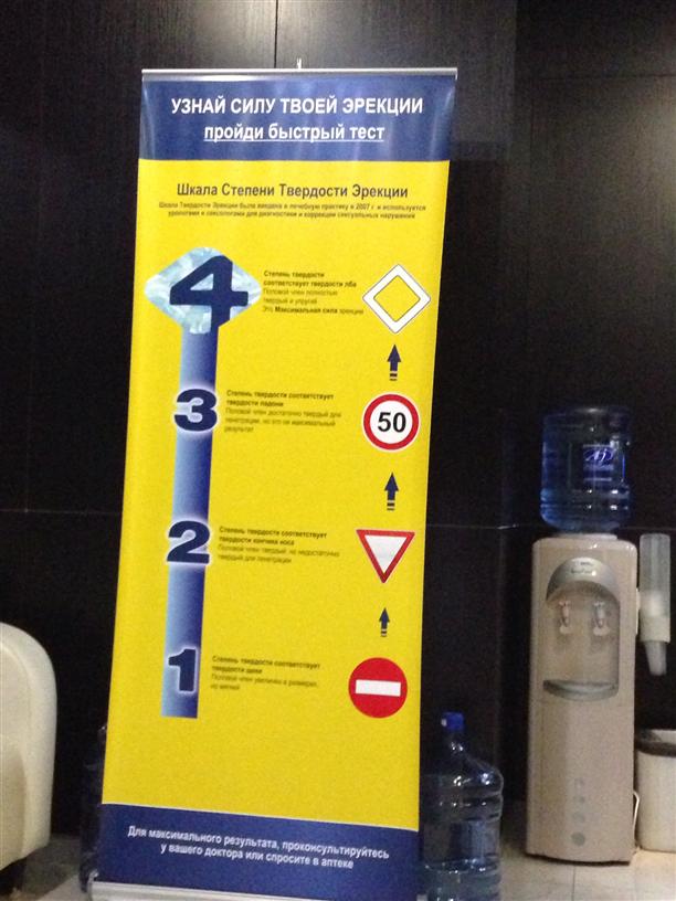 Очень понятно и доступно для любого мужика: твердость сравнивают с твердостью щеки, носа, ладони и лба. И стоит в нужном месте (клиника занимается качеством жизни мужчин и женщин). На столике в зоне ожидания обнаружила еще массу всяких рекламных проспектов, которыми… зачиталась!